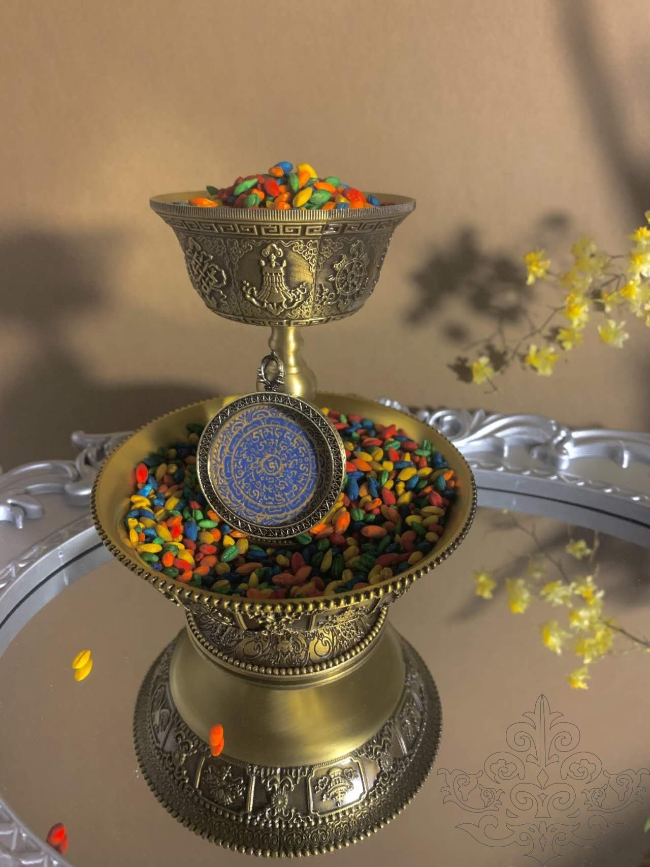 Your name will be inscribed on prayer flags, left to dance in the skies of Tibet(closest to the embrace of the sky). Each time the wind kisses the flags, it carries a blessing from the heavens—for you and those you hold dear.we will also purify your Thangkas energy field.